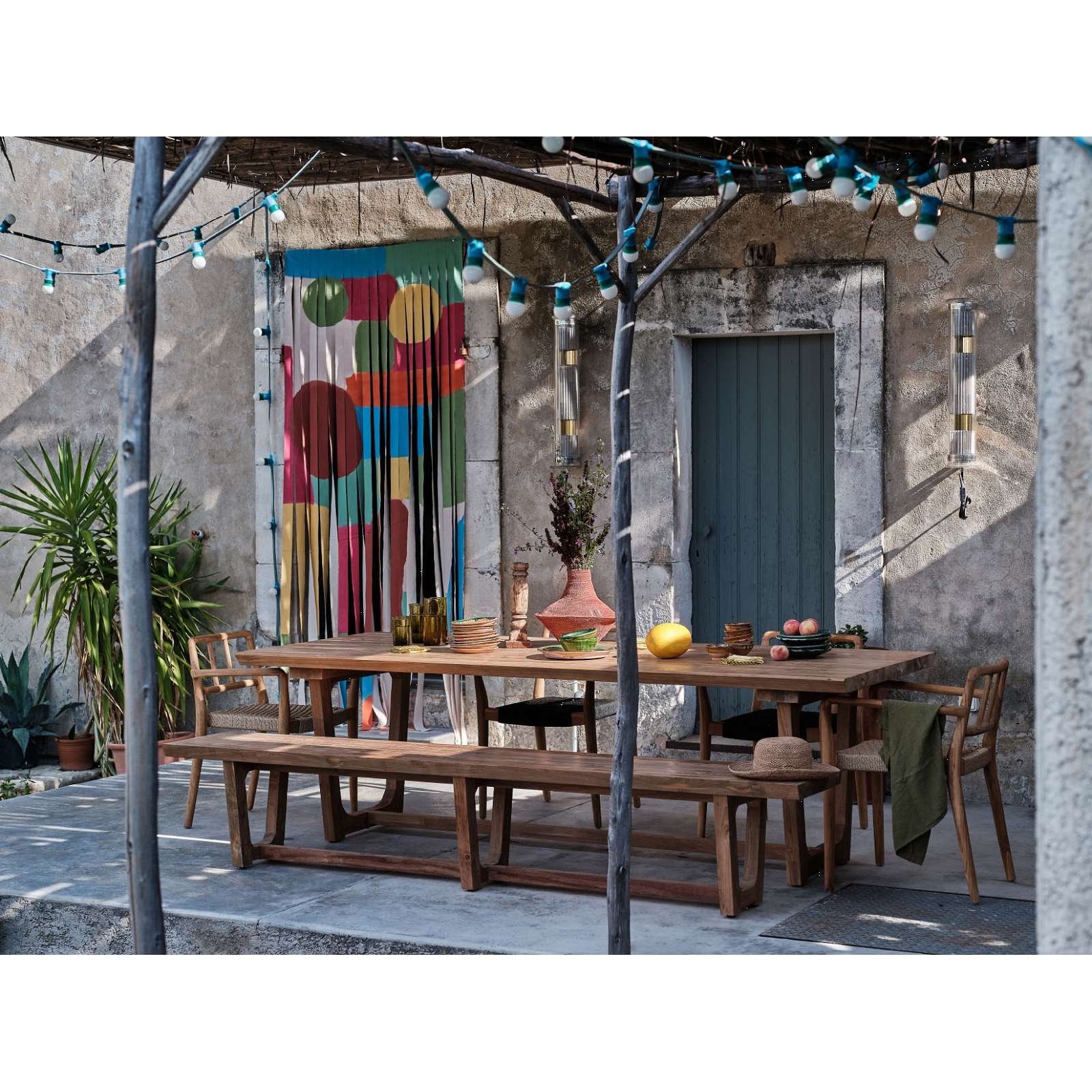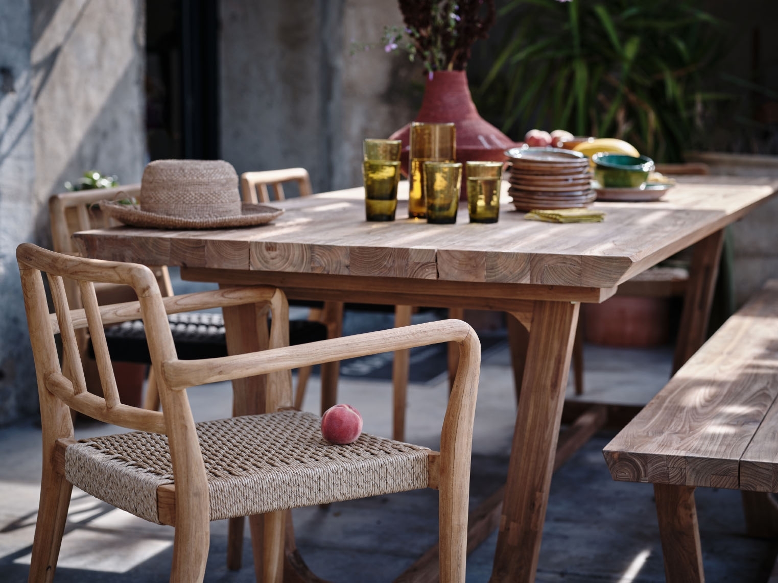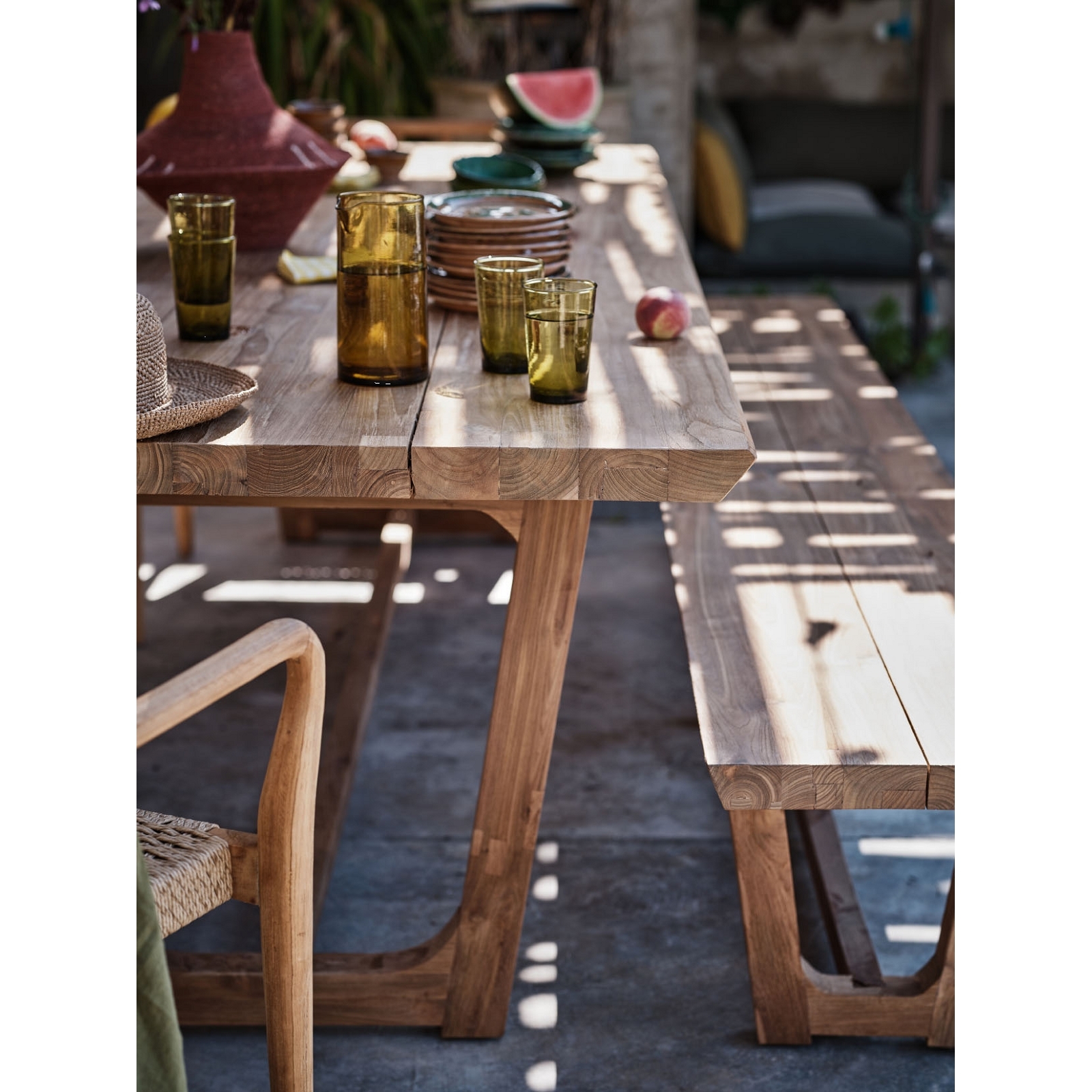 BABYLONE dining table, of solid reclaimed teak, for indoor and outdoor use.