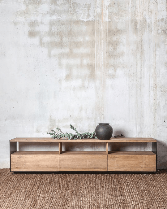 GEOX TV cabinets. Solid recycled teak and iron. Two or three drawers.