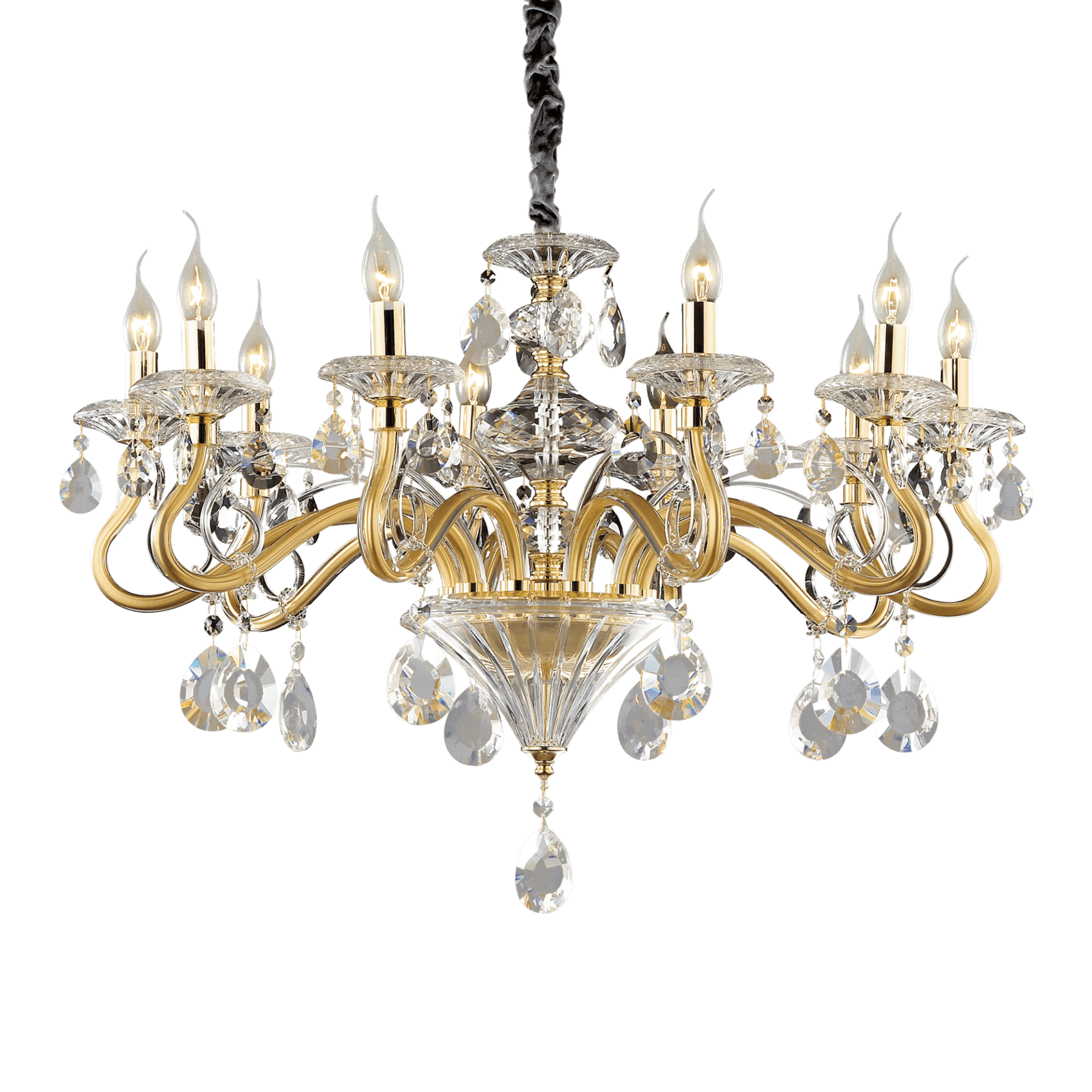 NEGRESCO : vidrio soplado y cristal tallado, estructura de metal con acabado dorado o cromado. 2 tamaños. 1029 €