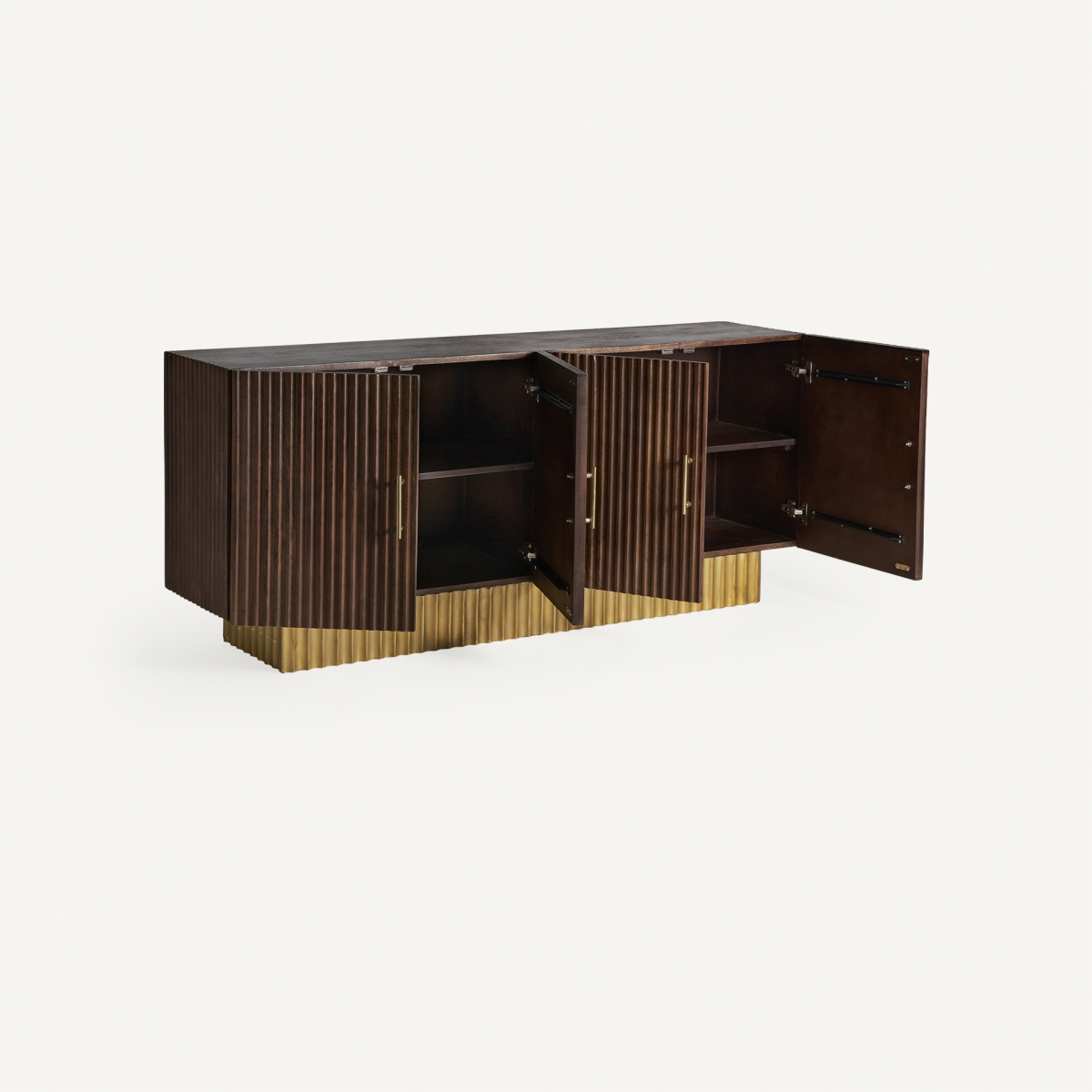 El aparador MESIA es un testimonio de diseño refinado y artesanía superior. Fabricado en madera de mango, su acabado madera/dorado añade un toque de lujo a salones y comedores que buscan combinar elegancia y modernidad. Su diseño robusto y detallado combina a la perfección funcionalidad y estética. Con un amplio espacio de almacenamiento, este aparador es a la vez artístico y práctico.