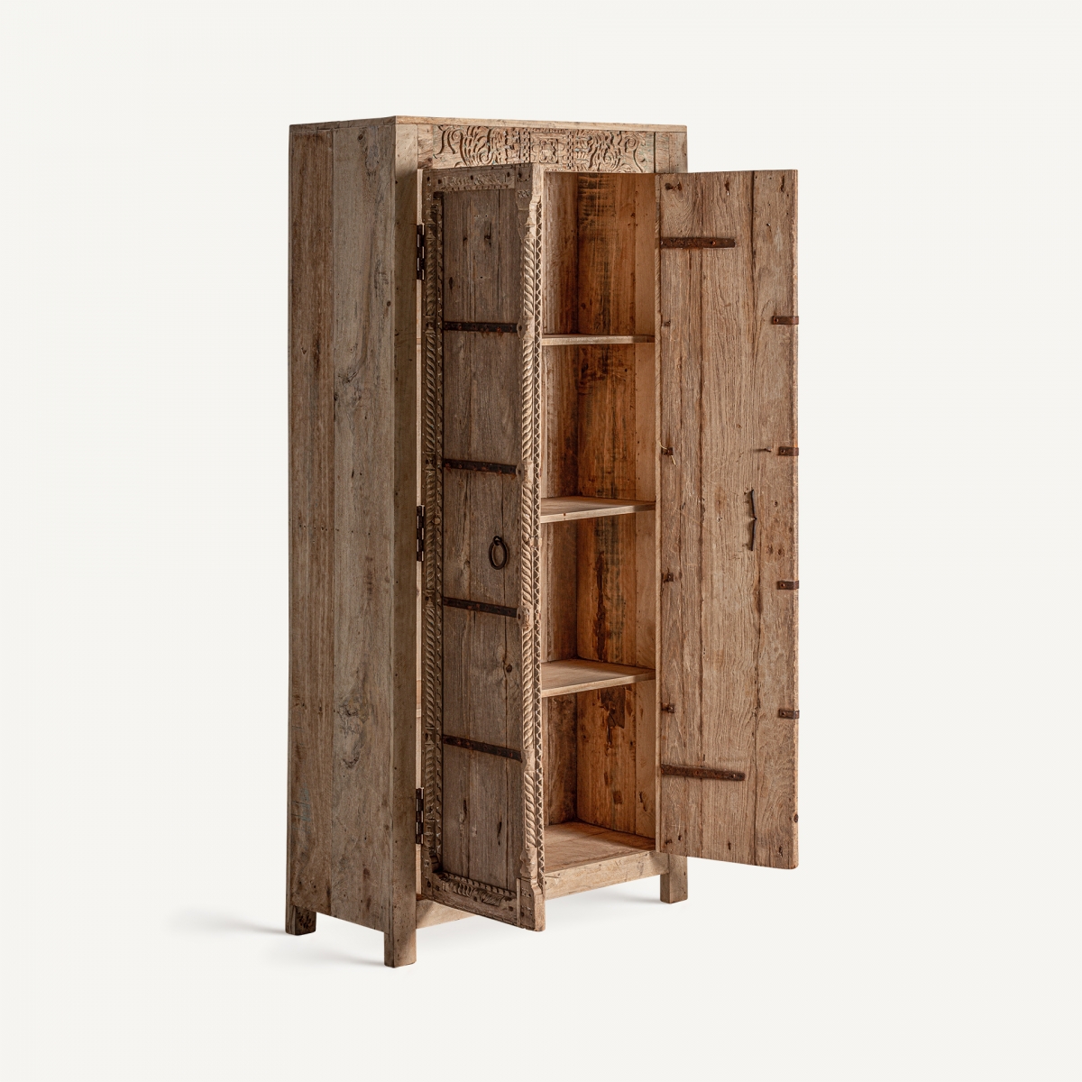 Armario SOCKEN de estilo colonial, fabricado en madera de teca maciza, combinado con hierro en color negro.
