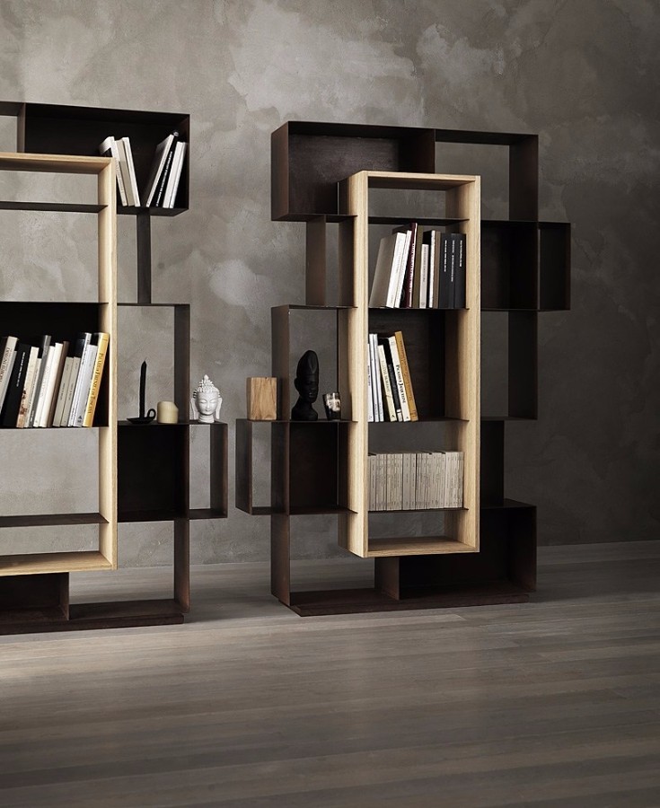 MOOIE. Diseño italiano, estantes de metal cortados con láser con estructura interna de madera chapada. Disponible en diferentes acabados. 180 x 83 x 42 cm. Precio desde 2890 €