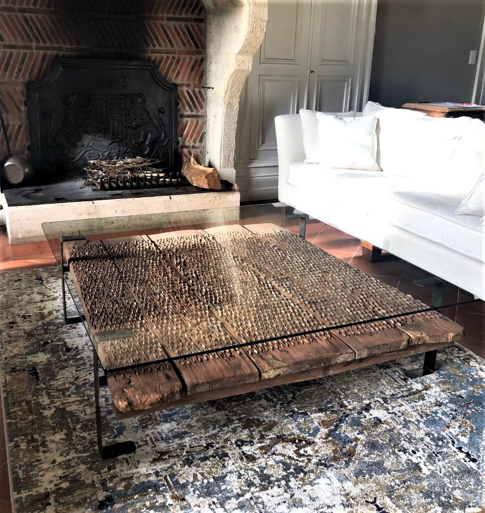Consolas TRIBULUM. Hechas a medida, cada mesa es única. Patas de acero laminado macizo o patas de horquilla. ¡Originalmente herramientas agrícolas antiguas, todas con más de 100 años, con más de 3000 años de historia! Podemos producir la mesa en las dimensiones que usted requiera. Póngase en contacto con nosotros para un presupuesto. También disponible en versión de mesa de centro.