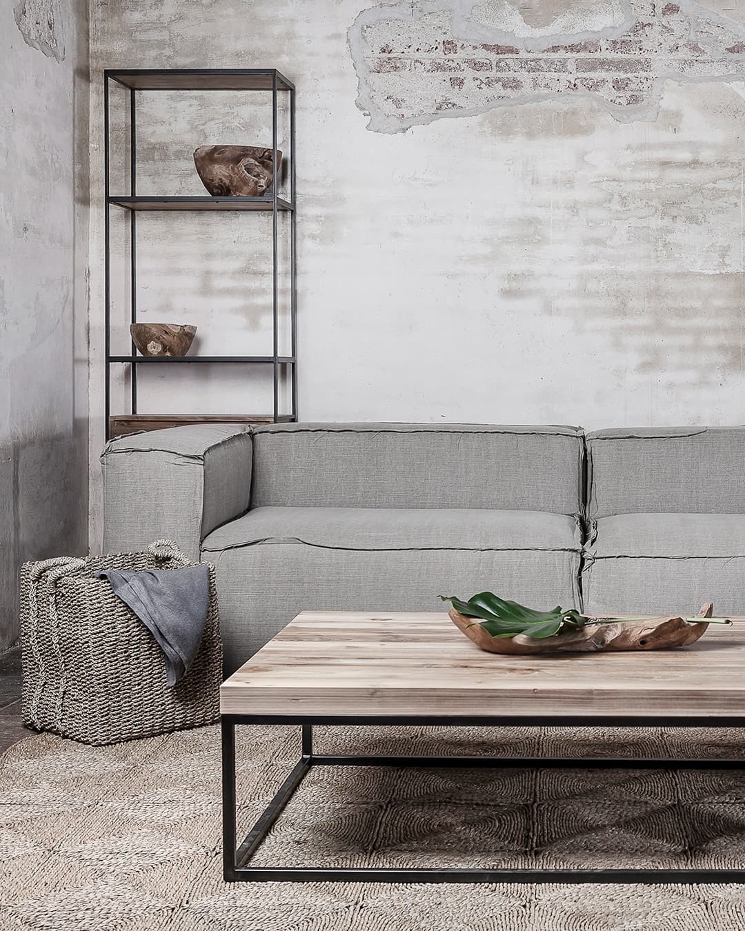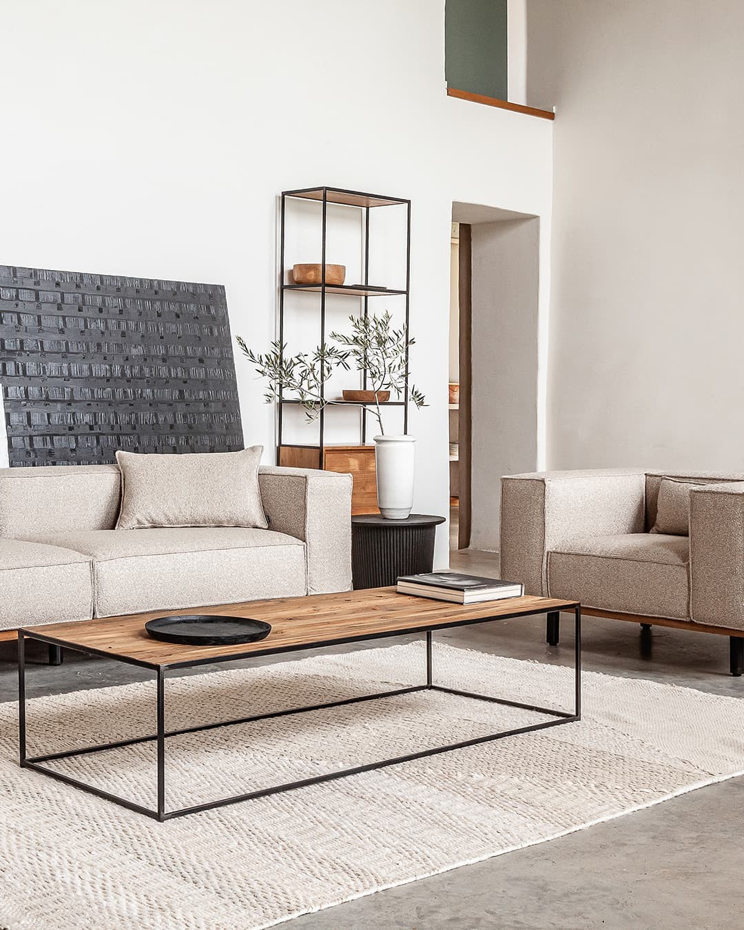Mesas de centro TWO, teca reciclada disponible en versiones acabado liso o erosionado/rústico, con patas hierro. Dos tamaños :